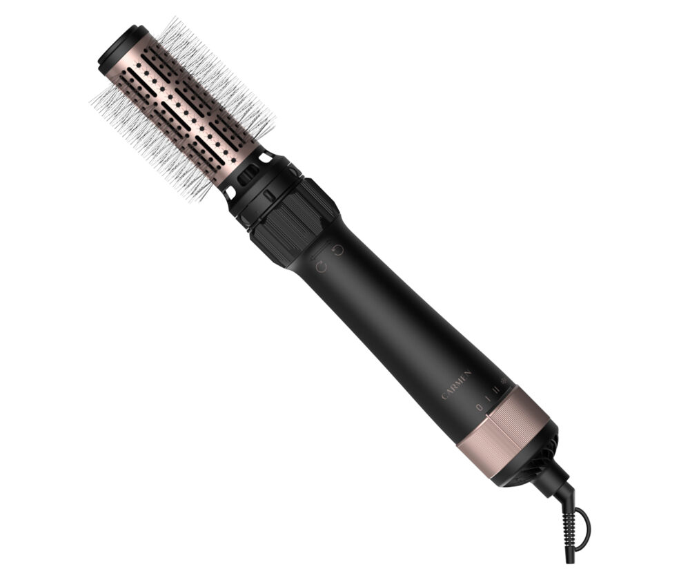 De Carmen CHB1085B volume föhnborstel maakt het drogen en stylen van je haar eenvoudig. Met deze alles-in-1 stylingtool combineer je föhnen, volume creëren en stylen in één handeling. Dankzij het vermogen van 1000 watt is de föhnborstel geschikt voor gecontroleerd dagelijks gebruik, zonder onnodige hitte. Wat deze föhnborstel extra handig maakt, is de roterende functie met dubbele draairichting. Hierdoor draait de borstel zowel links- als rechtsom, zodat je het haar gemakkelijk in model brengt en volume creëert, zonder zelf te hoeven draaien. De föhnborstel wordt compleet geleverd met 3 verwisselbare opzetstukken, waarmee je eenvoudig afwisselt tussen verschillende stylingwensen. Met de twee vaste warmtestanden en coolshot-functie droog en fixeer je je kapsel op een overzichtelijke manier. De ION technologie helpt statisch haar te verminderen en zorgt voor een gladder resultaat. De keramische coating verdeelt de warmte gelijkmatig tijdens het stylen. Het 180 cm lange snoer biedt voldoende bewegingsvrijheid.