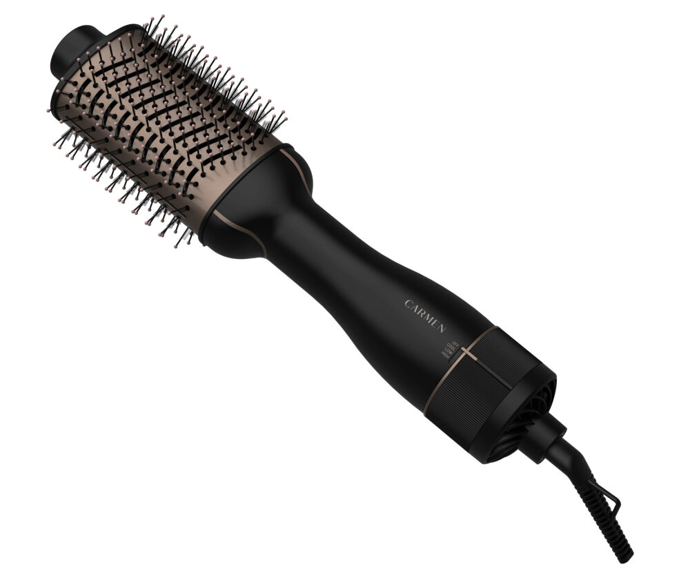De Carmen CHB1380B ovale föhnborstel is dé perfecte tool om je haar tegelijkertijd te drogen en te stylen. Dankzij het slimme ovale design creëer je eenvoudig volume bij de aanzet en een gladde, licht gekrulde finish in de punten. Deze veelzijdige föhnborstel is ideaal voor het drogen en stylen van (middel)lang haar en combineert het gemak van een borstel met de kracht van een haardroger. De toermalijn coating en geavanceerde ION technologie verminderen pluis en zorgen voor een prachtige glans. Met 2 warmtestanden (low en high) en een handige coolshot functie fixeer je jouw look moeiteloos. Het 180 cm snoer met roterende aansluiting biedt extra bewegingsvrijheid tijdens het stylen. Deze complete borstelföhn is ook perfect te gebruiken als krulborstel en wordt geleverd met 2 Carmen clips en een luxe velvet bewaaretui.